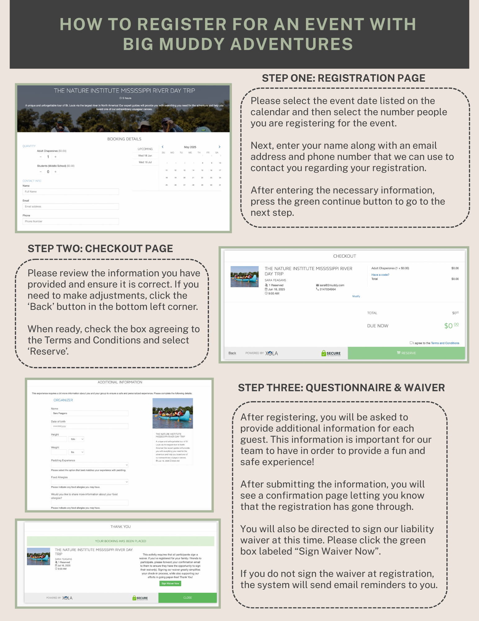 Instrucciones para la inscripción en Big Muddy Adventures